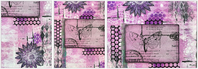 Ik heb er voor gekozen om het afdrukje uit te knippen en te verwerken op een achtergrondje die ik maakt met acryl verf. Ik heb eerst een lichtblauwe achtergrond gemaakt. En daarna wat donkerblauw verf op een embossing folder verdeeld en door mijn machine heen gedraaid. Goed laten drogen en daarna met verschillende kleine stempeltjes nog wat meer patroontjes aangebracht.