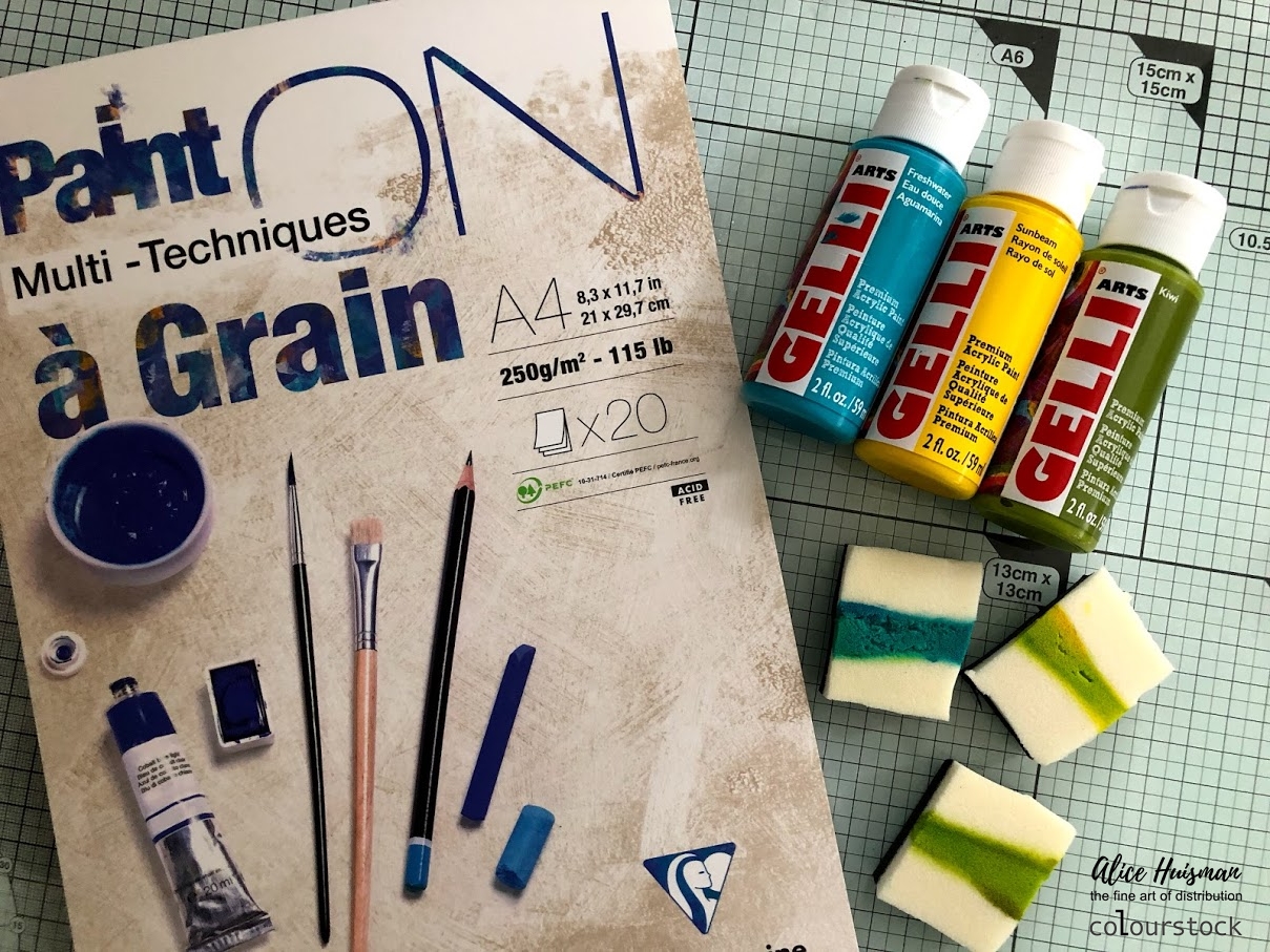 Ik begin met een aquareltechniek nat in nat op kant en klare tags.