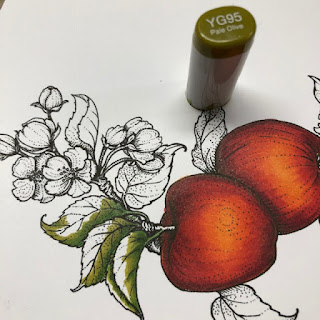 En daarna met de YG21. Met de YG21 blend ik ook het blaadje. Ik maak alle blaadjes af in de digi-stempel.