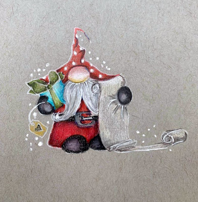 De ene man met rode mantel heeft ons landje verlaten en de andere rode mantelman neemt de prominente rol van hem over. Dus ik dacht dat het wel leuk was om eens met een kerstman (in dit geval gnoom) aan de slag te gaan. Ik ga deze vandaag stap voor stap inkleuren met mijn Derwent Lightfast potloden.