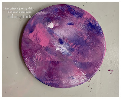 Zoals je op bovenstaande foto ziet heb ik de verf verdeeld en krijg je een mooi gemengd pallet van deze kleuren.