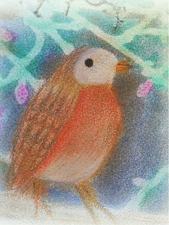 De vogel, dit zie je in het eindresultaat van de post is nog verder uitgewerkt met Coloursoft potloden van Derwent.