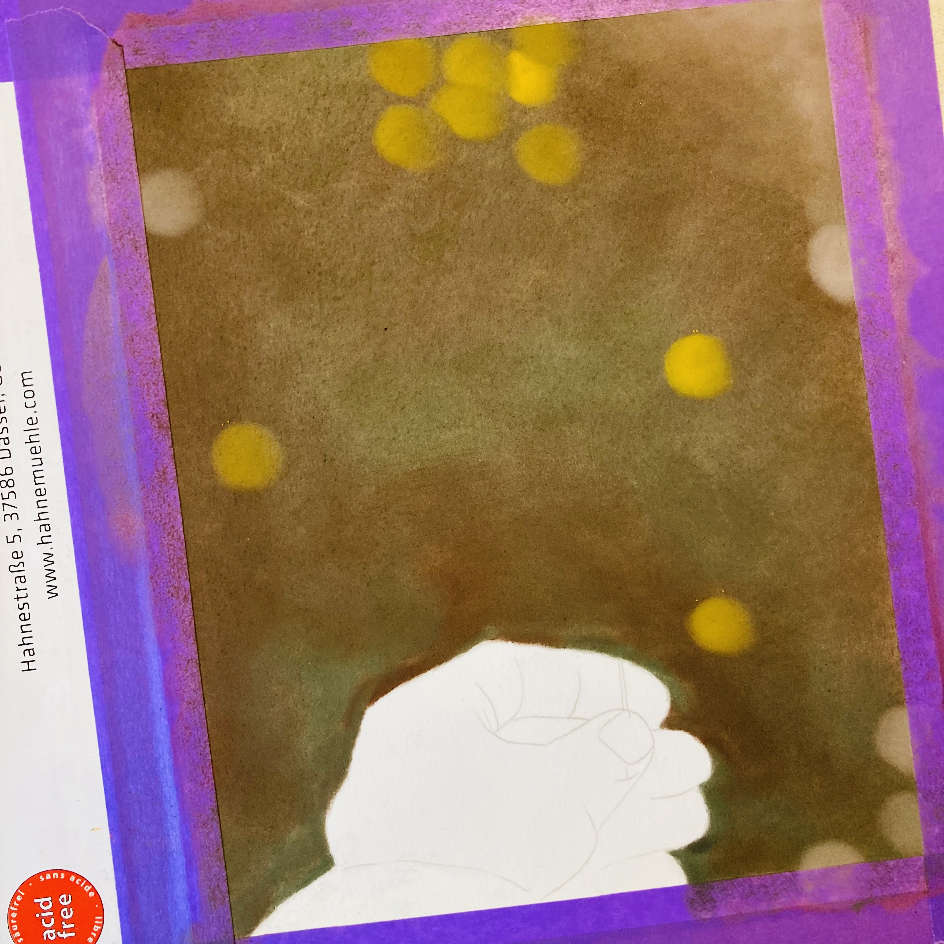 Van Unsplash op internet, heb ik een afbeelding uitgeprint en deze op de achterkant ingeveegd met zwarte (800.5) Pan Pastel, de afbeelding omgedraaid en over genomen op papier van Clairefontaine. Je tekent de lijnen over die je belangrijk vind om straks mee te werken.